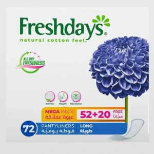 تتميز فوط Fresh Days اليومية الطويلة المعطرة بتصميم رقيق يمنحكِ حماية إضافية من التسرب مع رائحة منعشة تشعركِ بالراحة والثقة طوال اليوم.