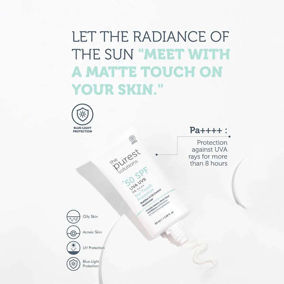 احصلي على حماية فائقة لبشرتكِ مع ذا بيوريست واقي شمس دراي توتش مع عامل حماية 50٪! ☀️✨